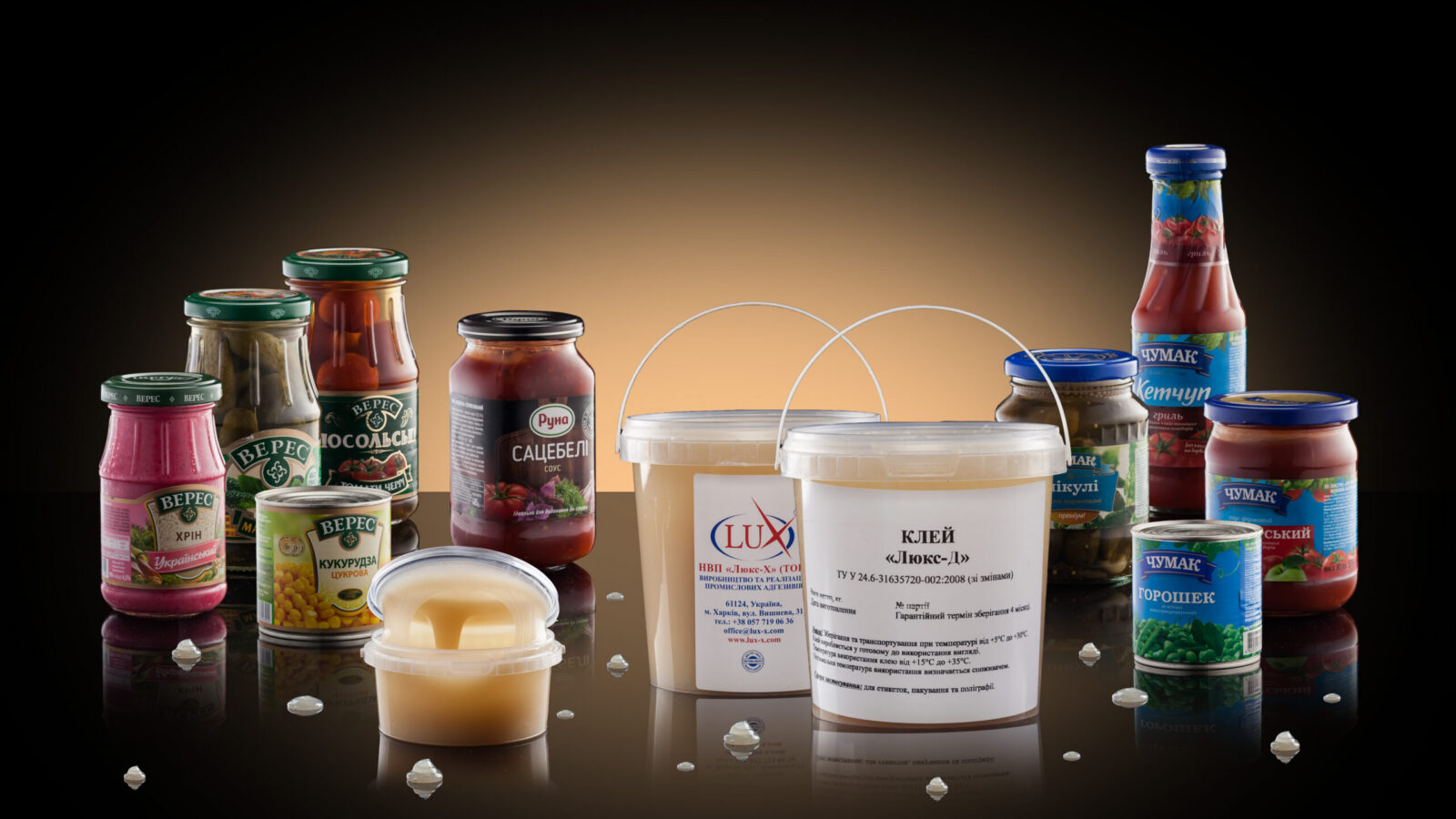 Компанія «Люкс-Х» займається виробництвом клеїв для харчової промисловості 25 років і розуміє, що виробники продуктів харчування та напоїв потребують високоефективні клеї для забезпечення якості та безпеки своєї продукції. Якщо ви зацікавлені у покращенні виробничого процесу за допомогою екологічно безпечних клеїв, зв’яжіться з нашими фахівцями через форму зворотного зв’язку на нашому сайті або за номерами телефонів: +38 (050) 324 06 36; +38 (057) 766 06 36.