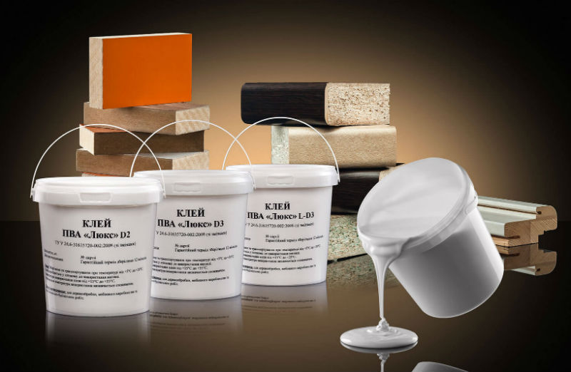 1. ПВА – найбільш затребуваний серед клеїв для деревини і склеювання дерев’яних деталей під час складання меблів. Полівінілацетат (ПВА) відомий абсолютно кожній людині ще з дитинства, оскільки його часто застосовували для склеювання паперових виробів. Компанія “Люкс” виробляє лінійку клеїв на основі ПВА: клей ПВА “Люкс”, клей ПВА “Люкс” D2, клей ПВА “Люкс” D3 і його модифікації, а також дисперсію ПВА. У деревообробці найчастіше використовують водостійкі клеї. Найбільш популярний – клей ПВА “Люкс” D3. Ця група клеїв застосовується при виготовленні кухонних меблів, дерев’яних підлог, сходів, зрощування бруса для вікон тощо. Клеї ТМ “Люкс” успішно зарекомендували себе на багатьох підприємствах, оскільки виготовлені з високоякісної сировини, зокрема європейського виробництва, їхня якість підтверджена вітчизняними та зарубіжними сертифікатами згідно з EN 204/205:2001 на водостійкість і міцність клейових з’єднань.